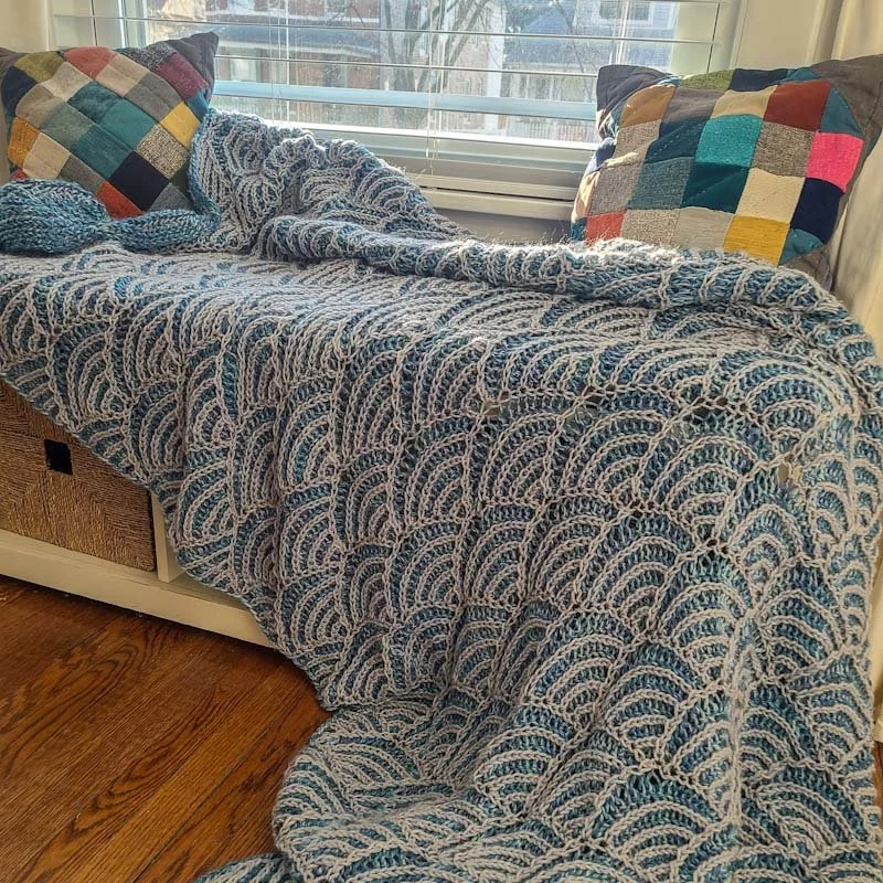The moment I saw Blue Sea in Knitty’s Deep Fall 2021 issue I knew I had to make it. I found the graphic element of the Japanese inspired wave design stunning and I had been hoping to make an extra blanket for our bed during the coldest part of winter. There were just a few problems: