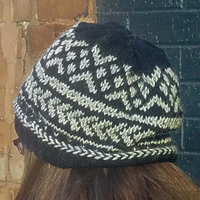 Yarn: stash Heathered Alpaca yarn in white and black, Knit Picks Swish worsted (in black)
