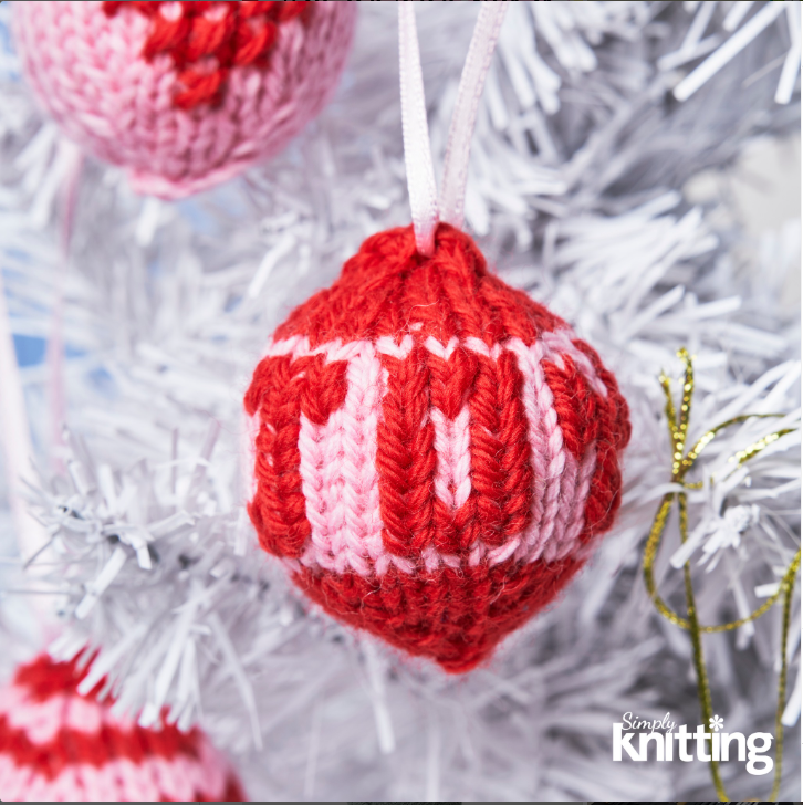 Christmas Baubles by Becca Parker, Simply Knitting Magazine, 1st edit (Instagram link)