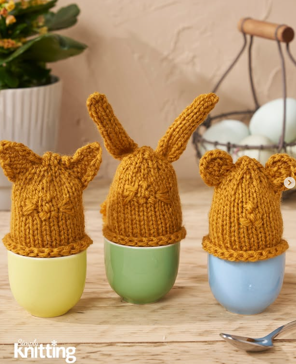 Animal Egg Cozies by Amanda Berry, Simply Knitting Magazine, 1st edit (Instagram Link)