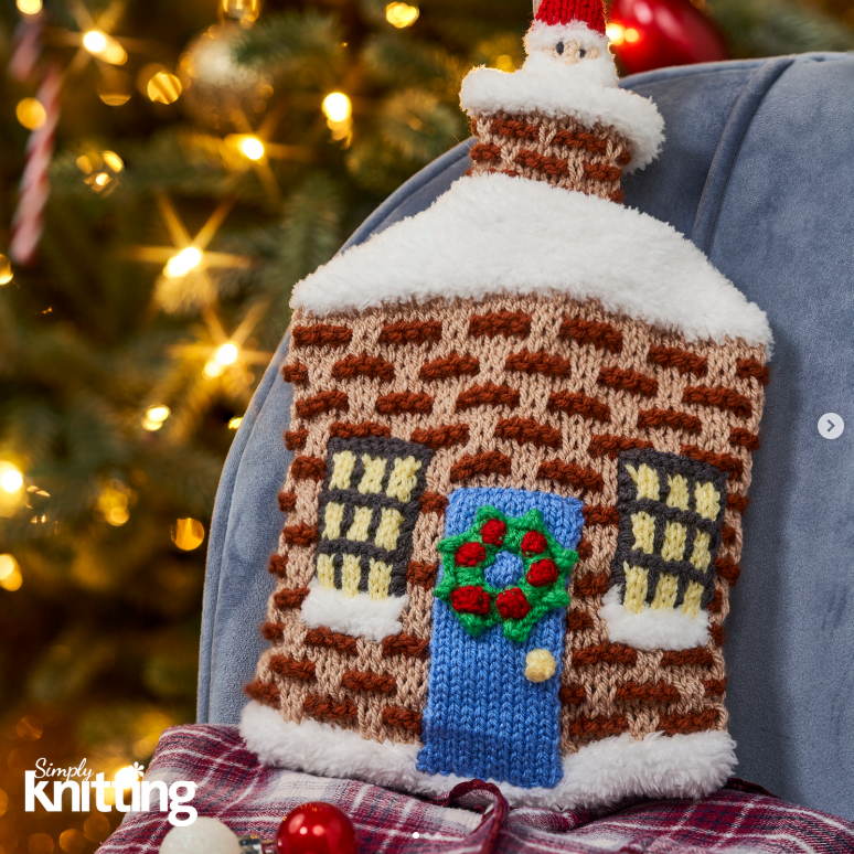 Holiday House Hot Water Bottle Cover, Susan Cowper, Simply Knitting magazine 2nd edit (Instagram link)